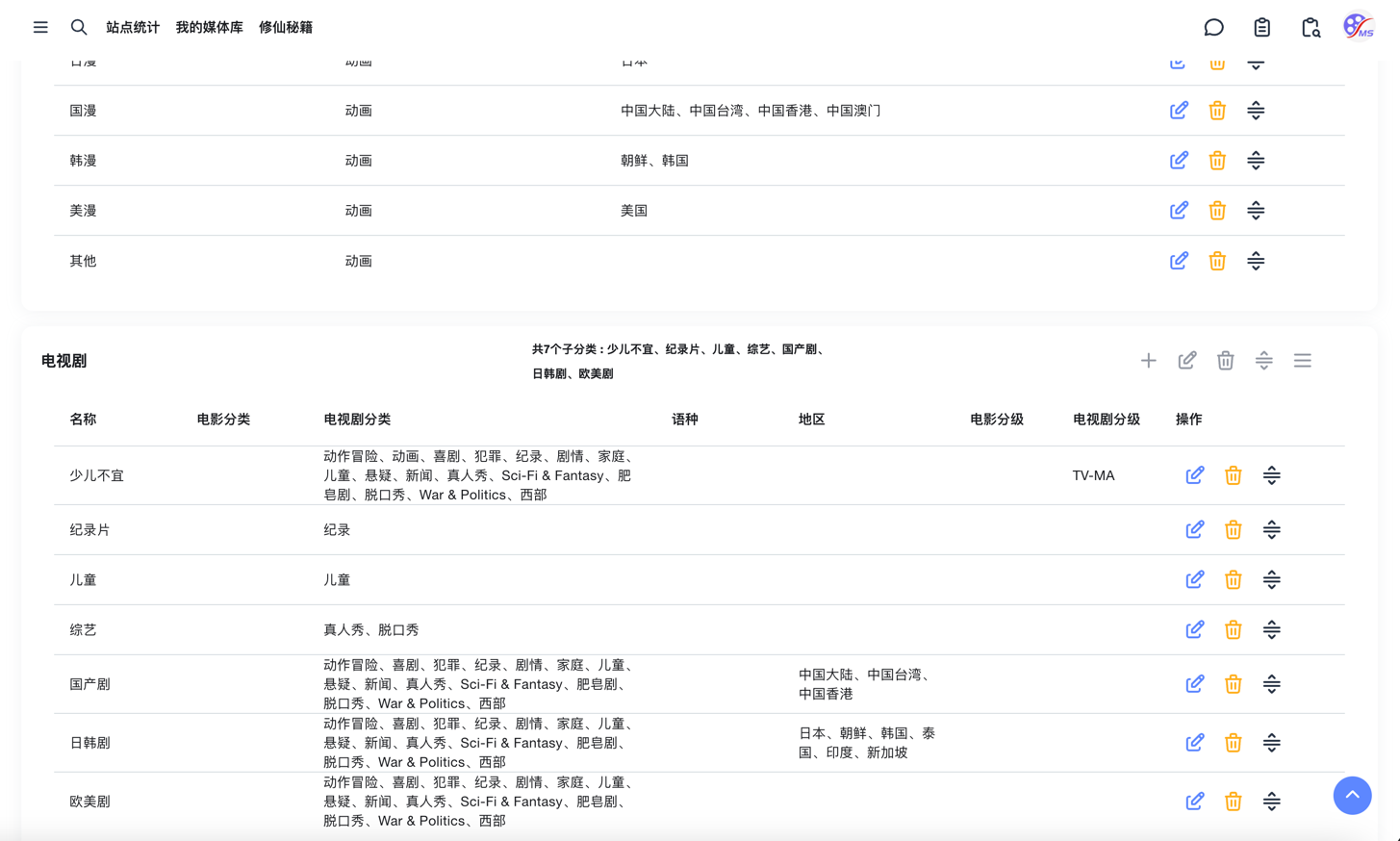 动漫 分类必须排在 电视剧 之前,否则会被错误归类。