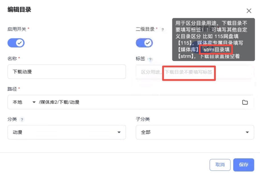 - ✅ 3 个本地下载目录(电影 / 电视剧 / 动漫)