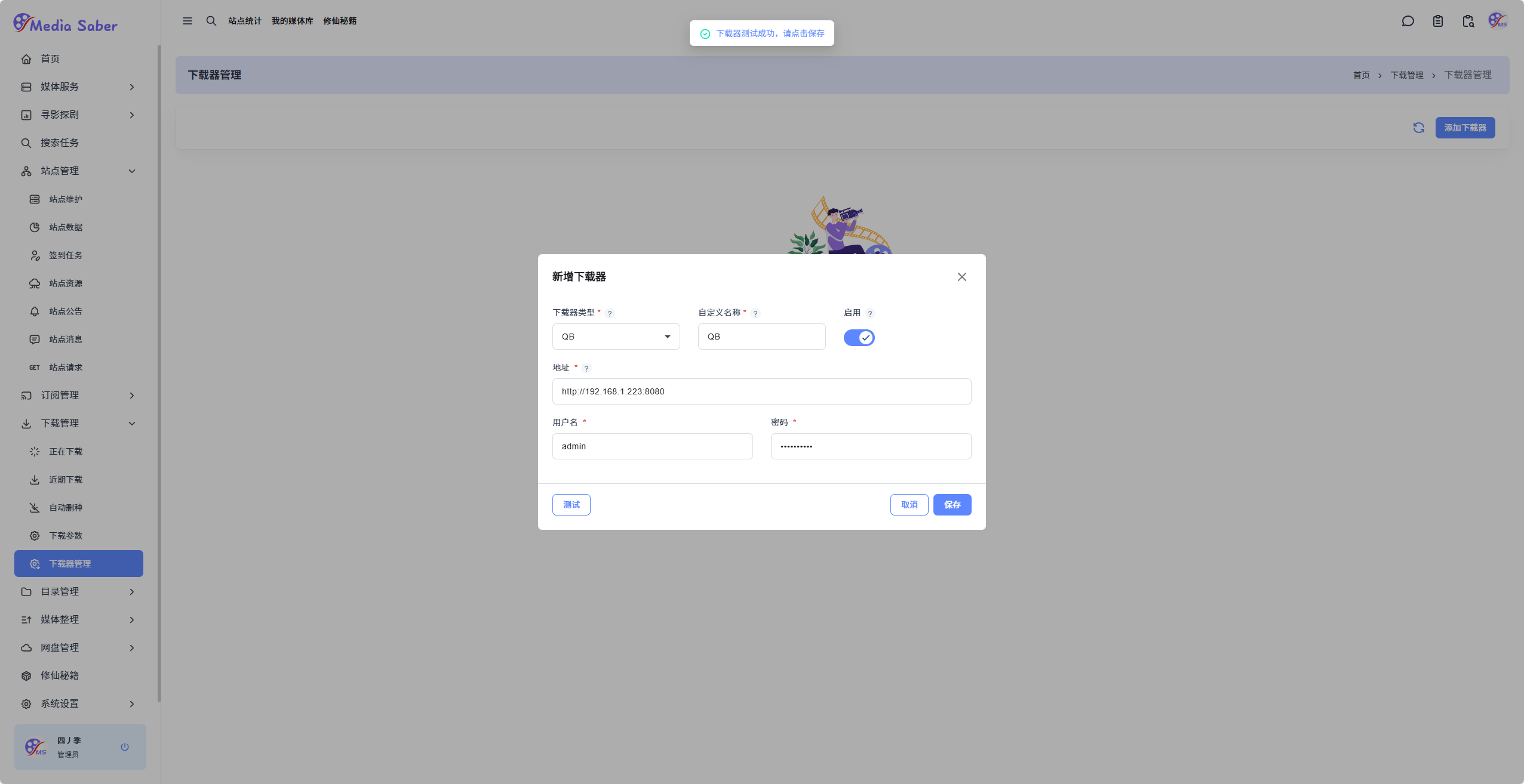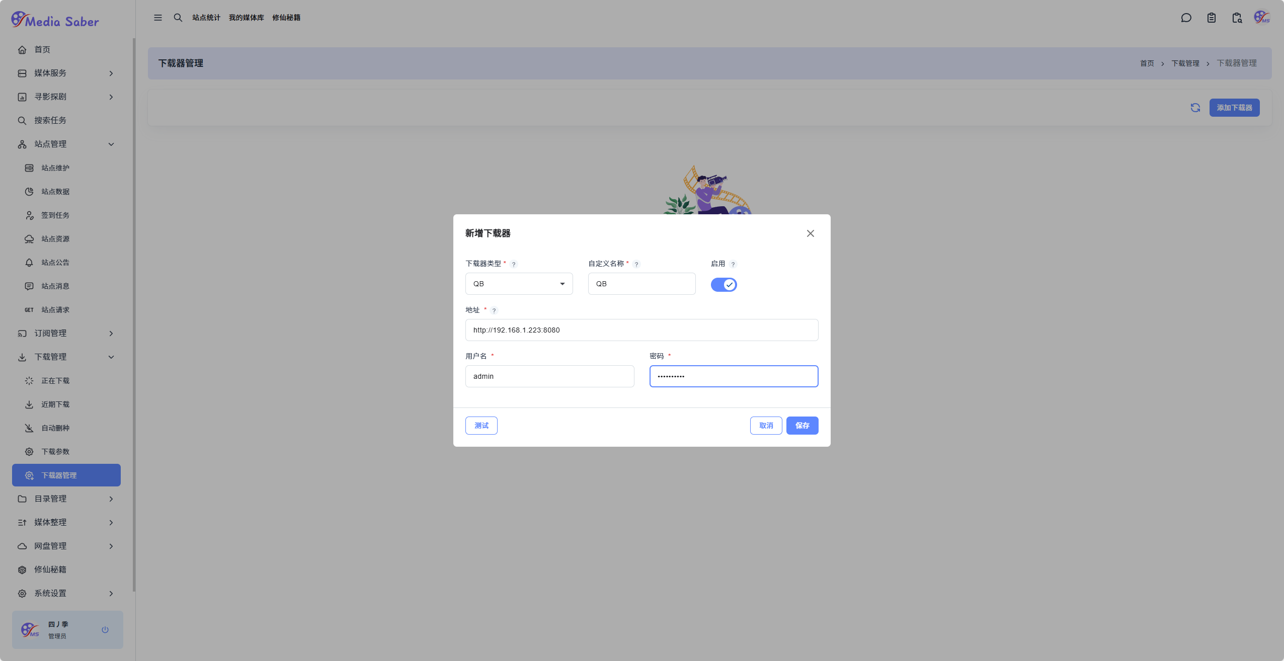访问路径: 下载管理 → 下载器管理 → 添加下载器