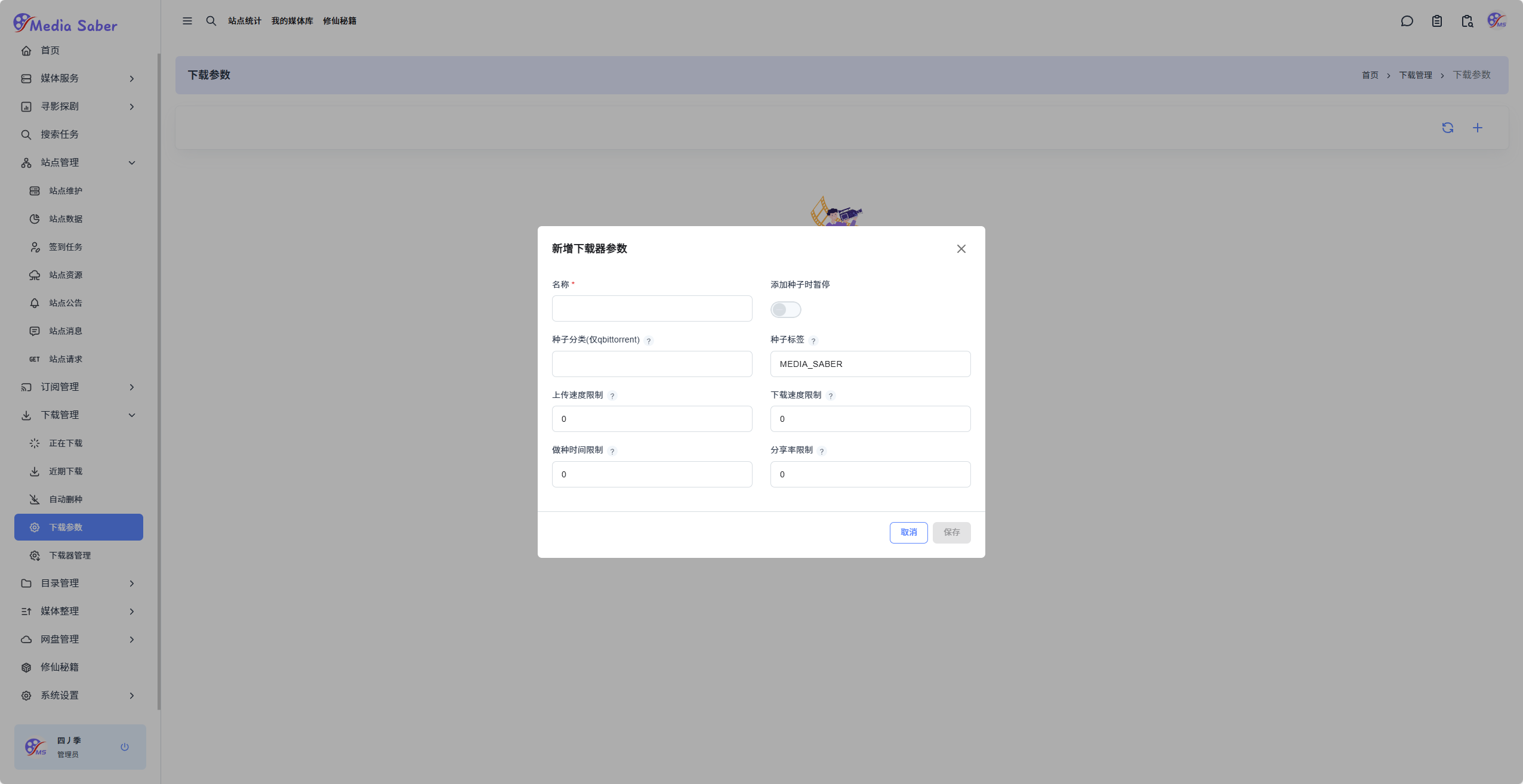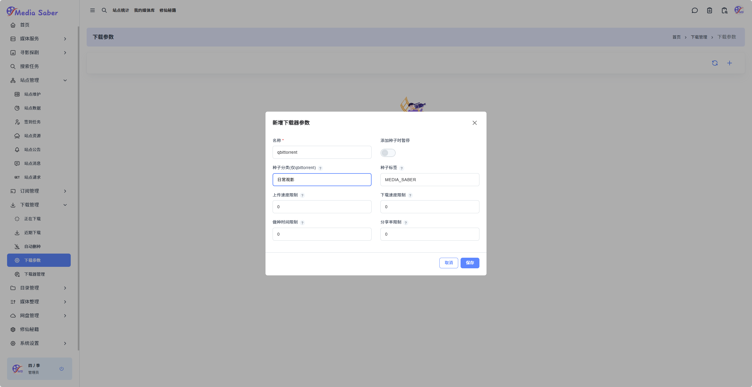 本页面介绍如何在 Media Saber 中配置下载器和下载参数。