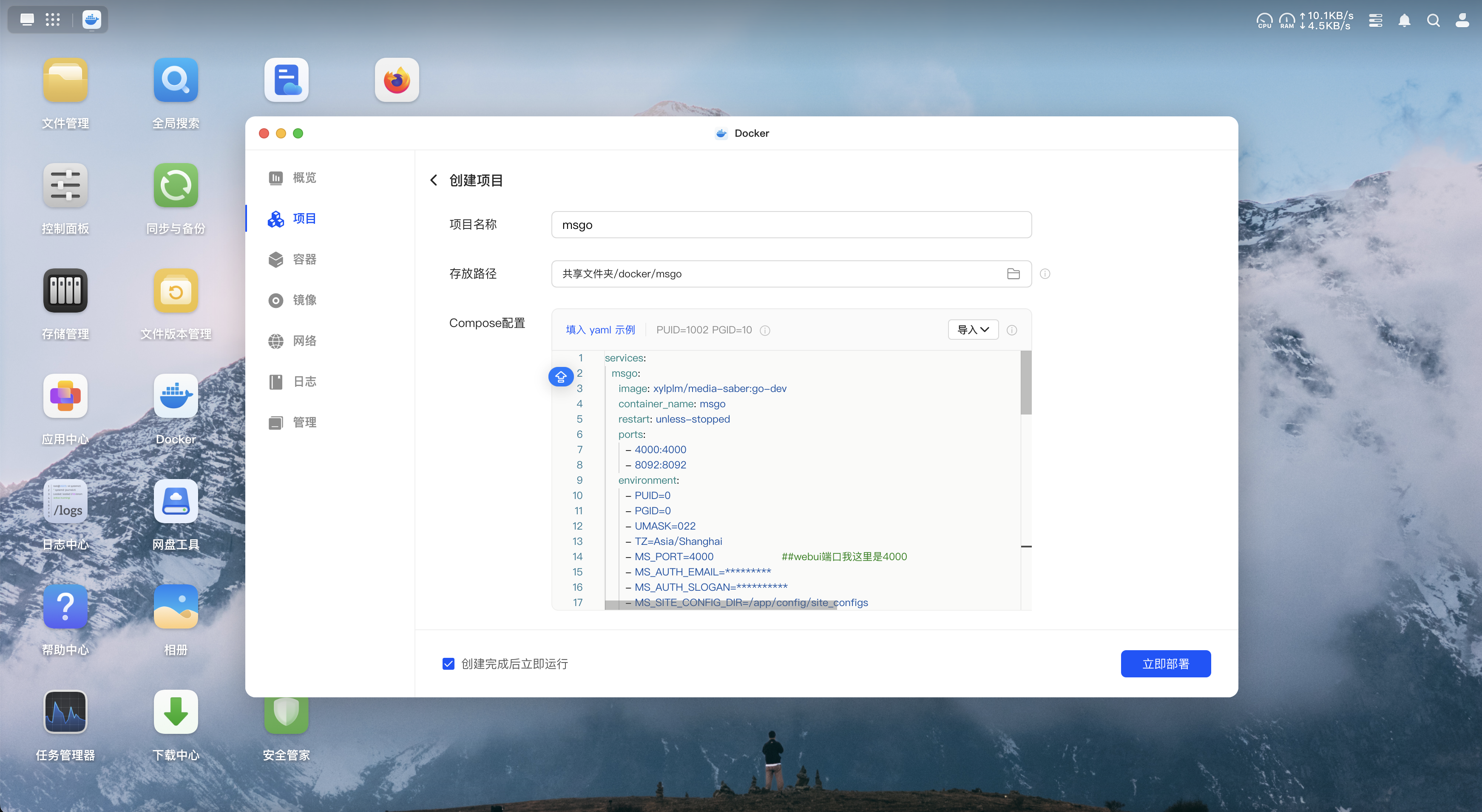 - MS_REDIS_HOST=redis:6379 ##当你使用一个compose文件创建项目,会被创建到同一个桥接网络,容器之间可以直接填写容器名称代替IP地址通讯