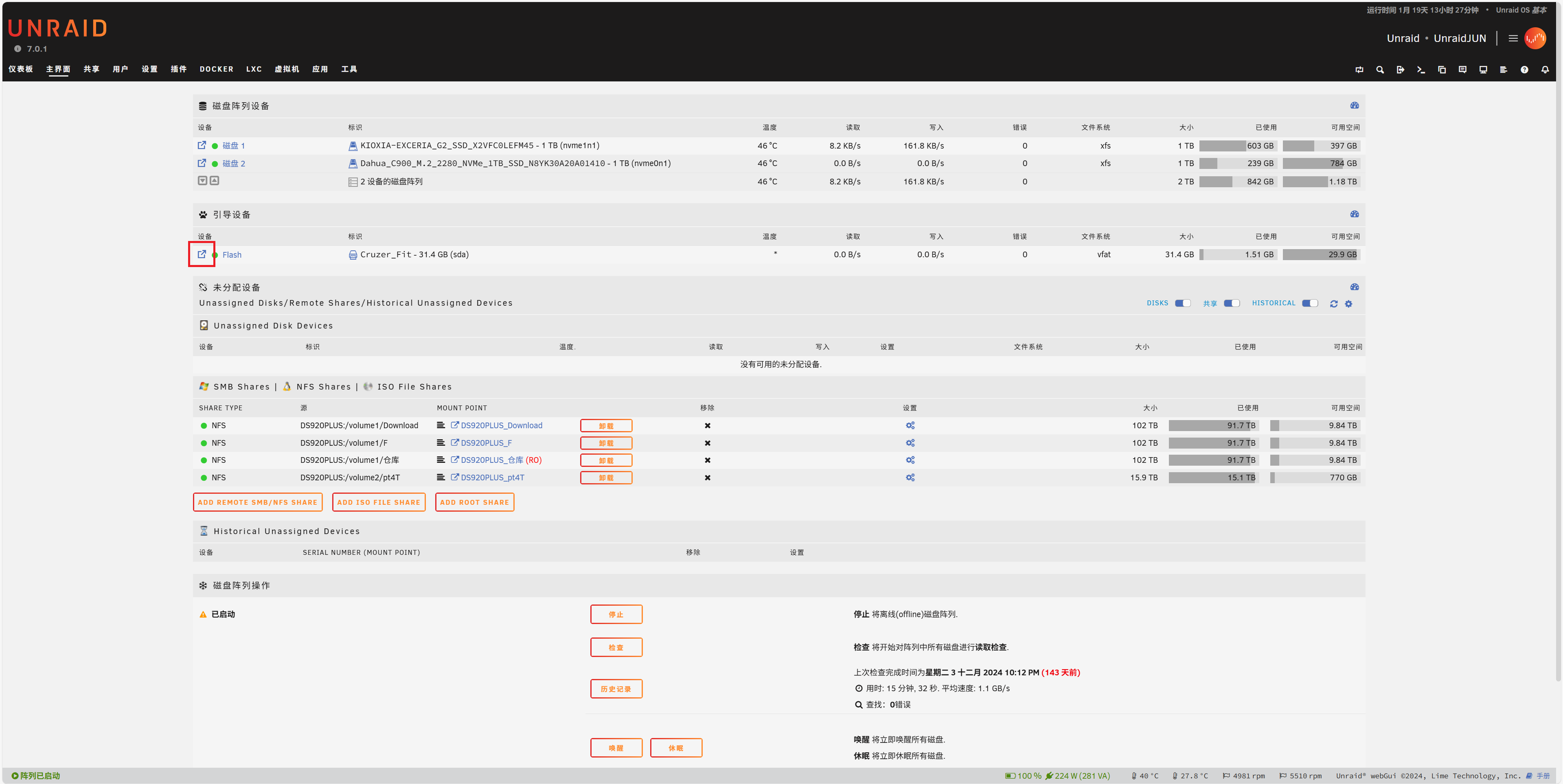 - 打开 UNRAID Web UI