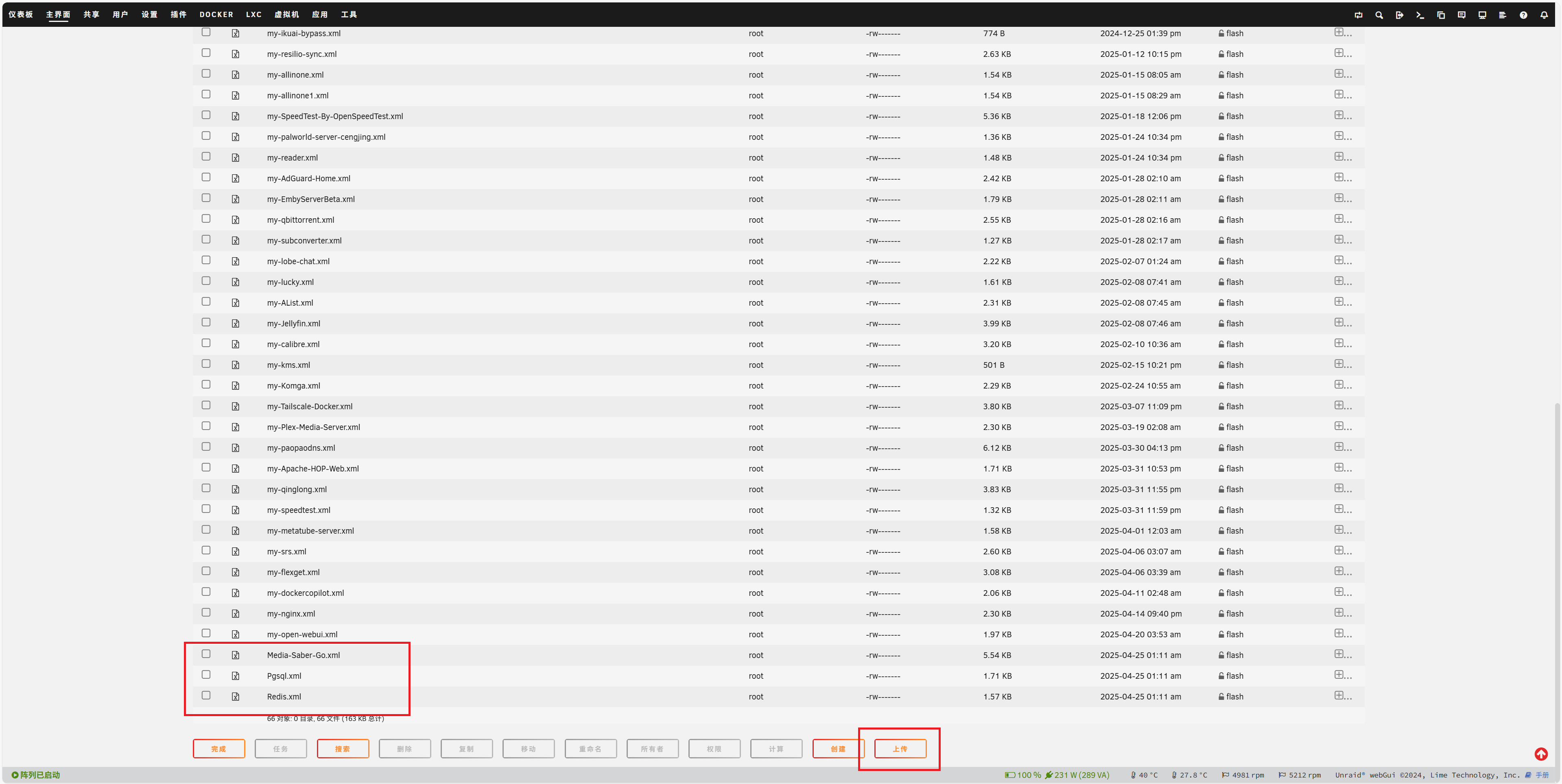 - 点击 上传,将三个 XML 文件上传至此目录