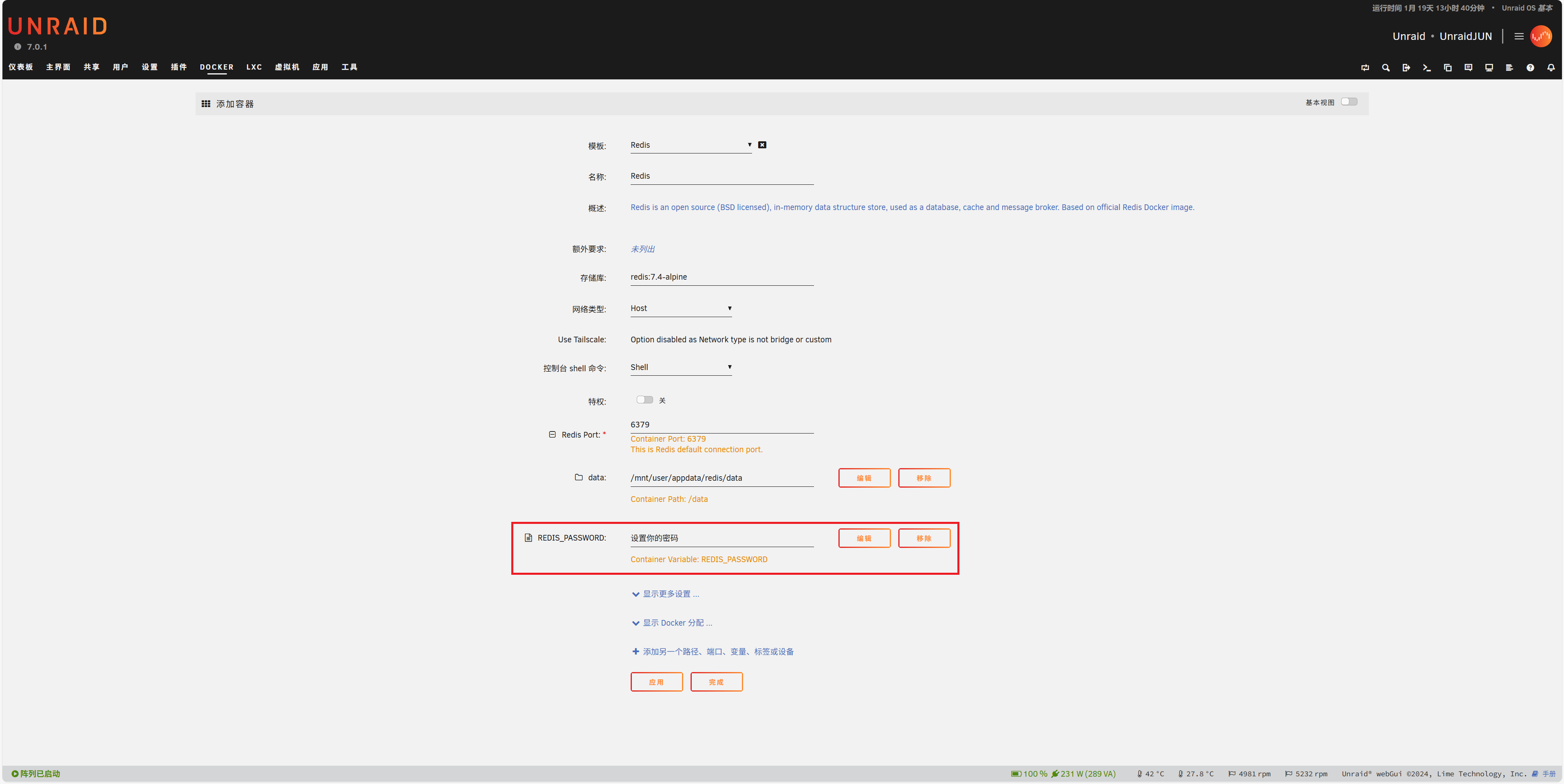 REDIS_PASSWORD参数为你的 Redis 密码 - 点击 应用