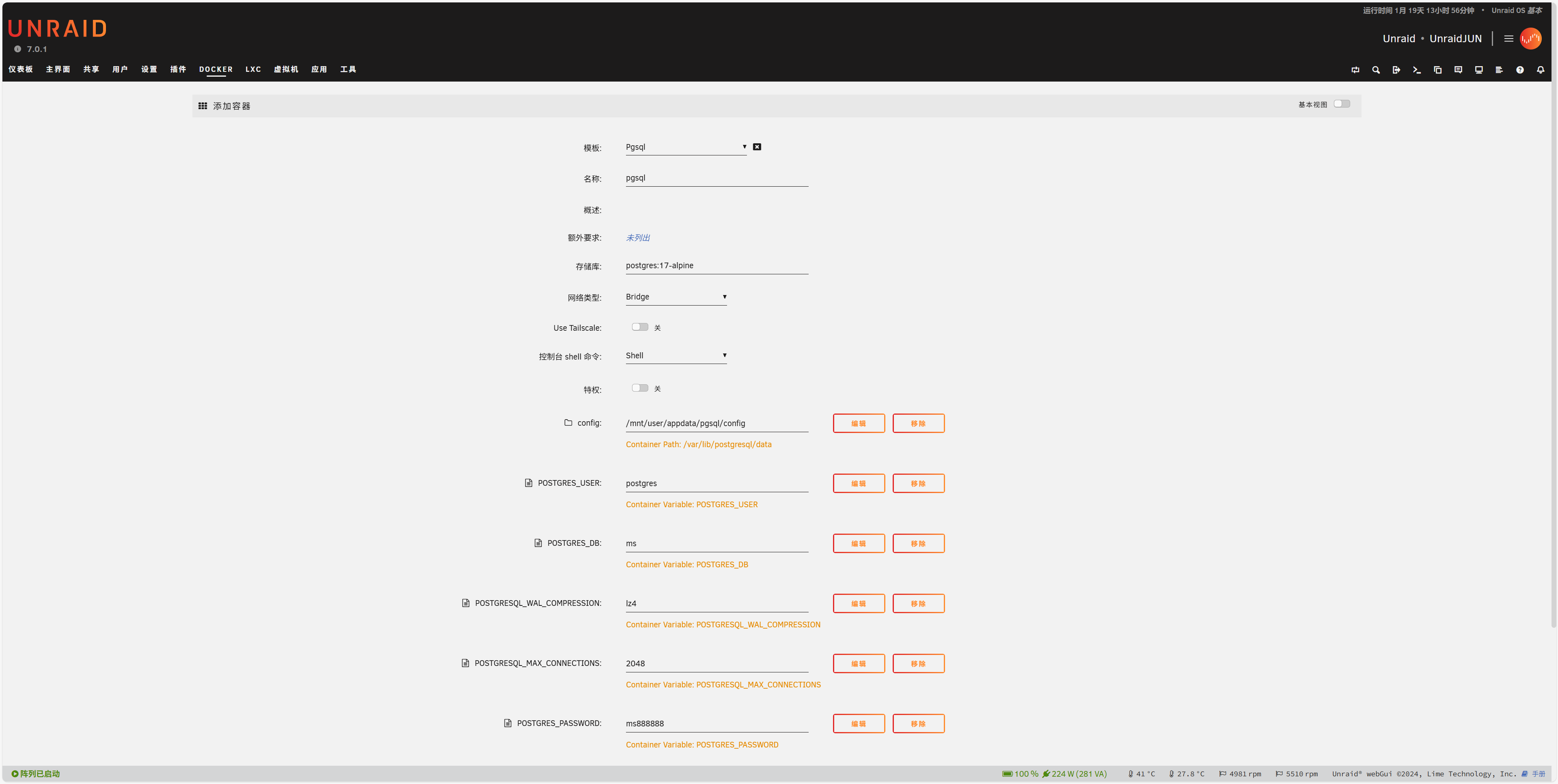 | MS_PGSQL_PATH | 127.0.0.1 或 unraid-ip | PostgreSQL 服务器地址 |