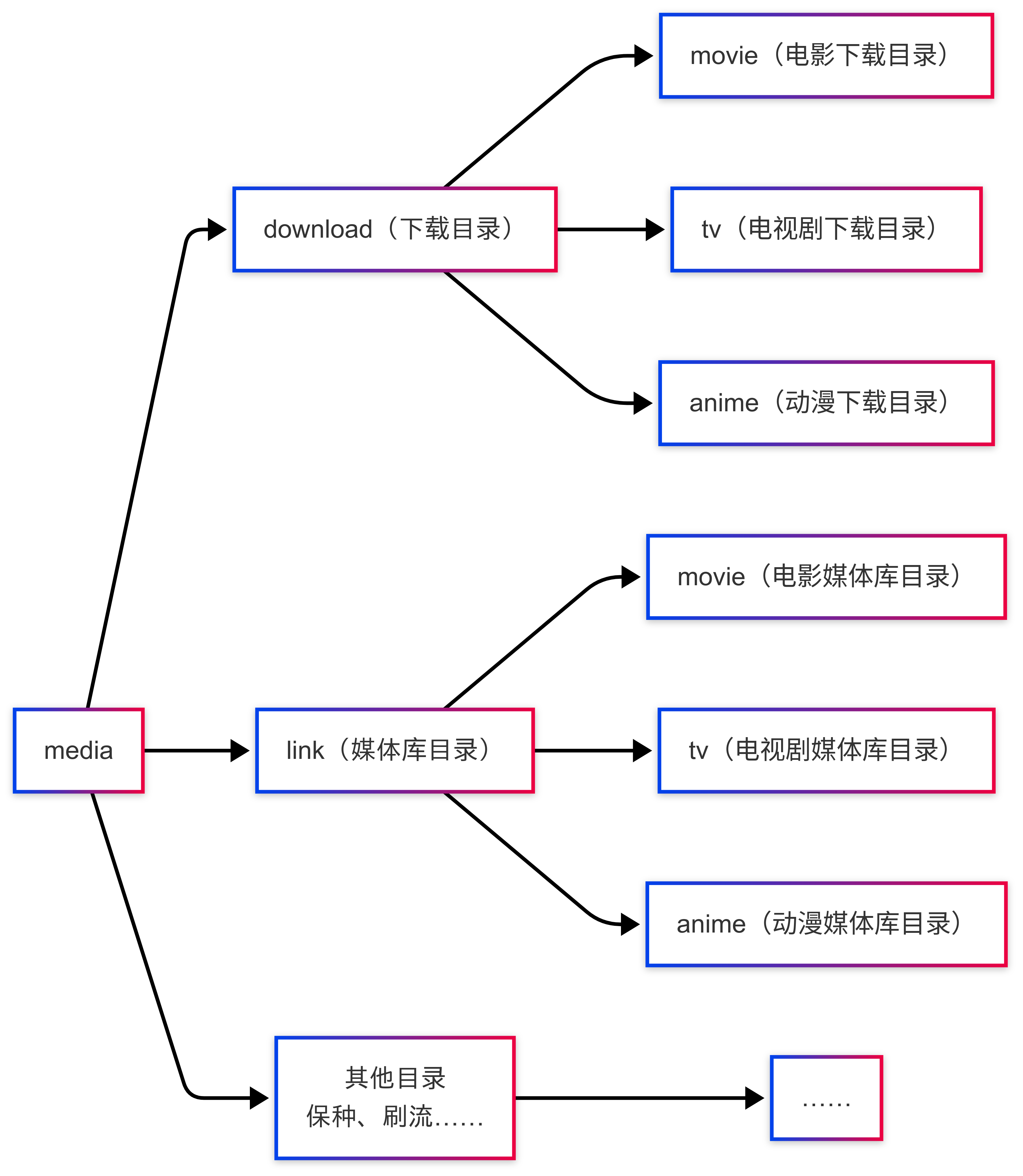│ └── config # qBittorrent 配置(可选)媒体目录结构